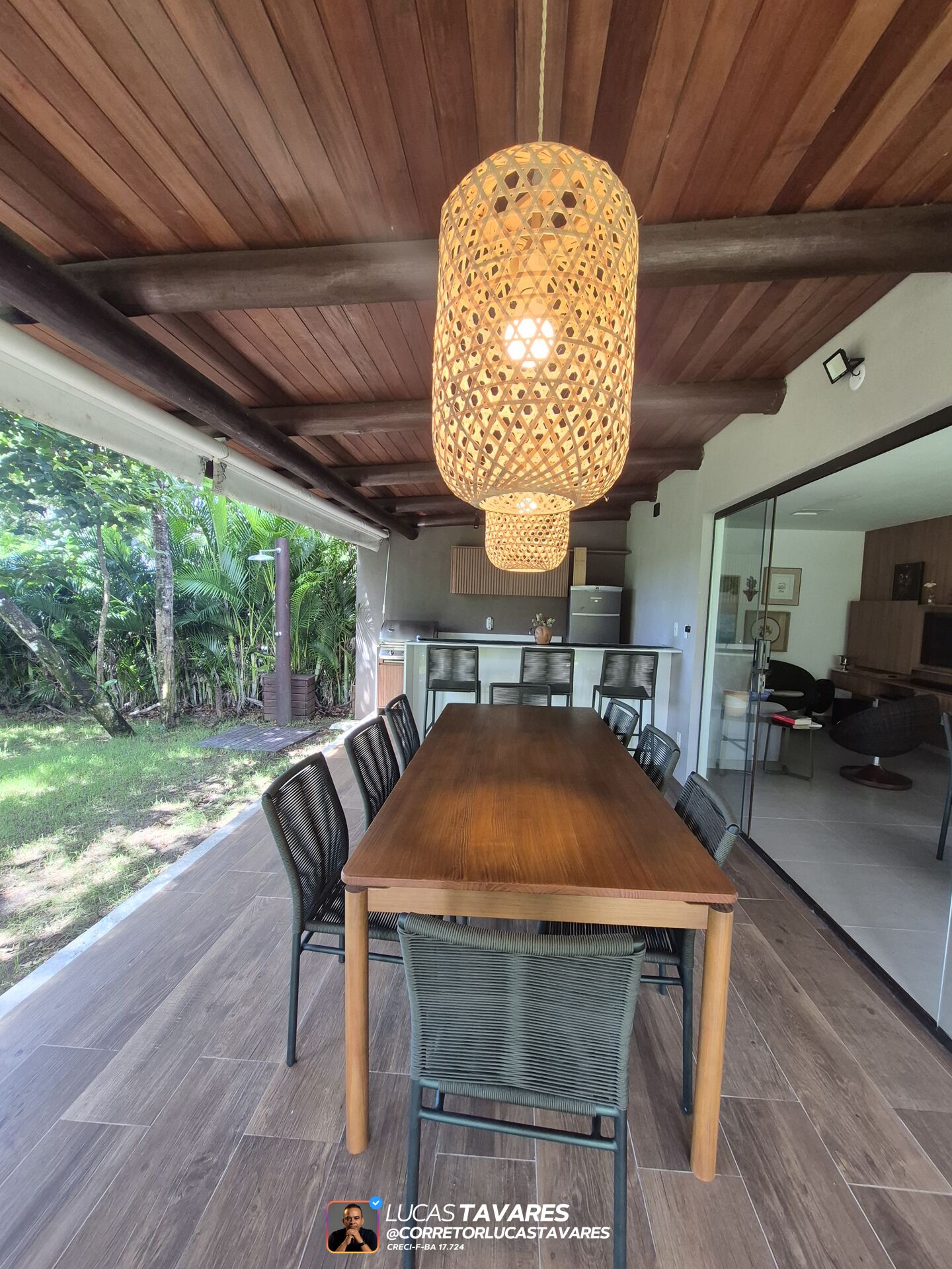- Área Externa Gourmet: Varanda em "L" espaçosa com churrasqueira de inox, bancada de apoio, redário e chuveirão privativo no jardim.